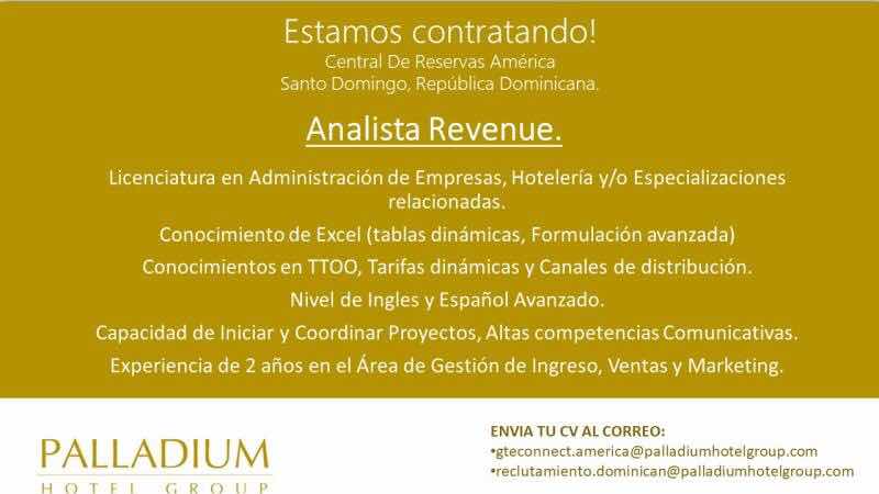 ANALISTA REVENUE- PALLADIUM HOTEL GROUP