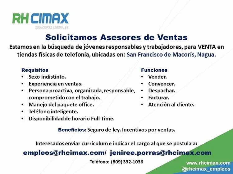 ASESORES DE VENTAS. SAN FRANCISCO Y NAGUA