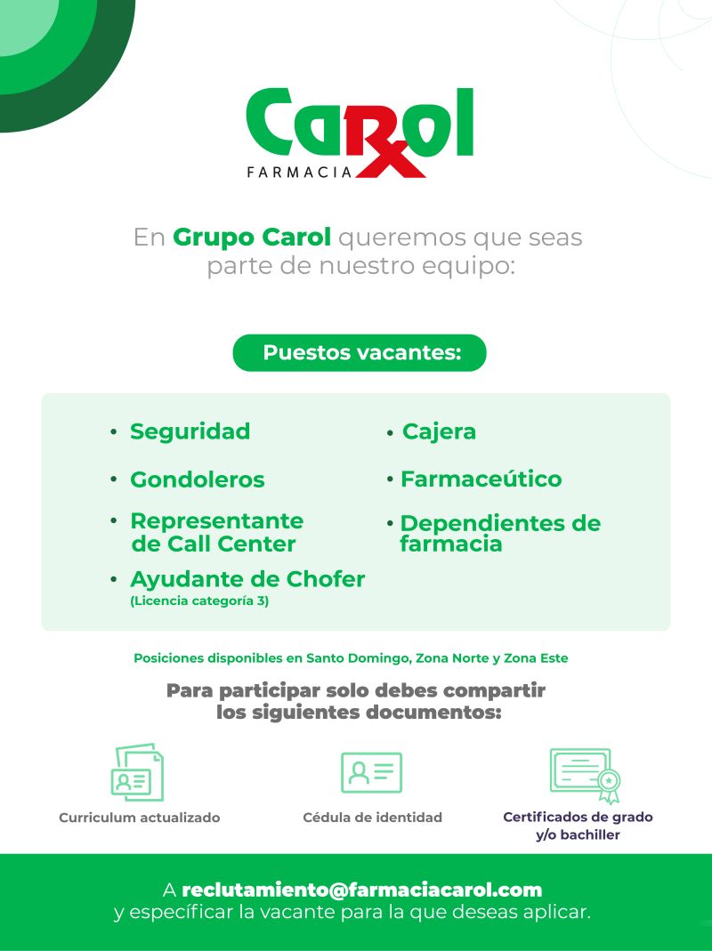 FARMARIA CAROL BUSCA- CAJERA, FARMACEUTICA, DEPENDIENTE, SEGURIDAD, GONDOLEROS, CALL CENTER Y AYUDANTE CHOFER