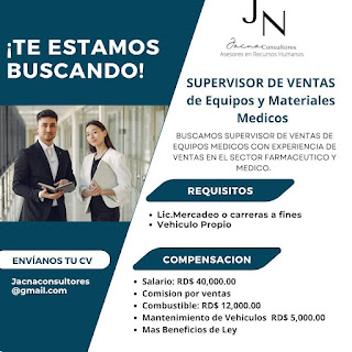 SUPERVISOR DE VENTAS DE EQUIPOS Y MATERIALES MEDICOS