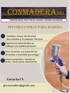 TERMINADOR EN MADERA, PREPARADOR, AUXILIAR TAPICERIA, PINTOR SPRAY MADERA,